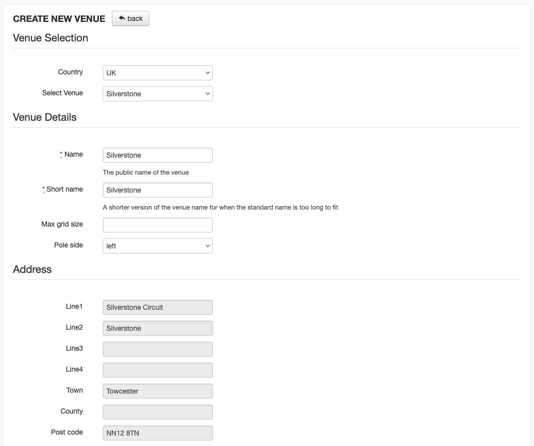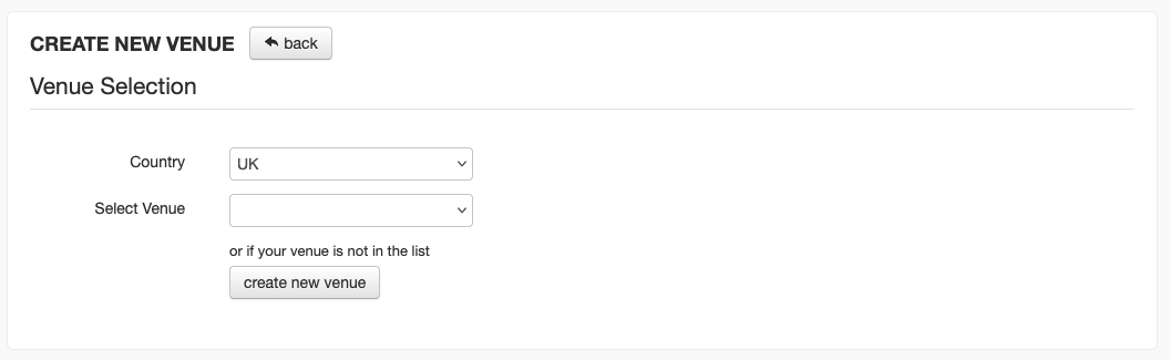 We've got a global list of existing venues you can select, but if your venue isn't already in the list, click 'create new venue'.