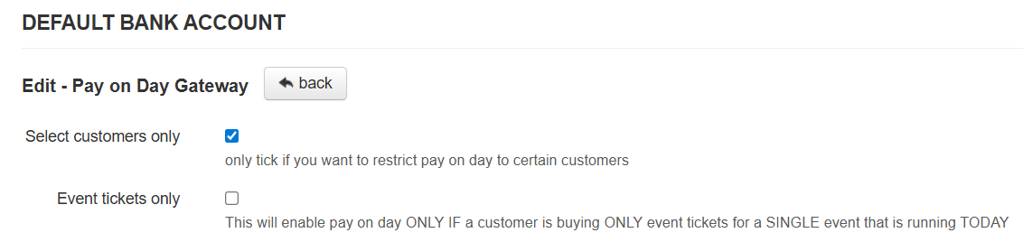 STEP 2: There are two optional settings you can enable for the Pay on Day method to restrict its usage: