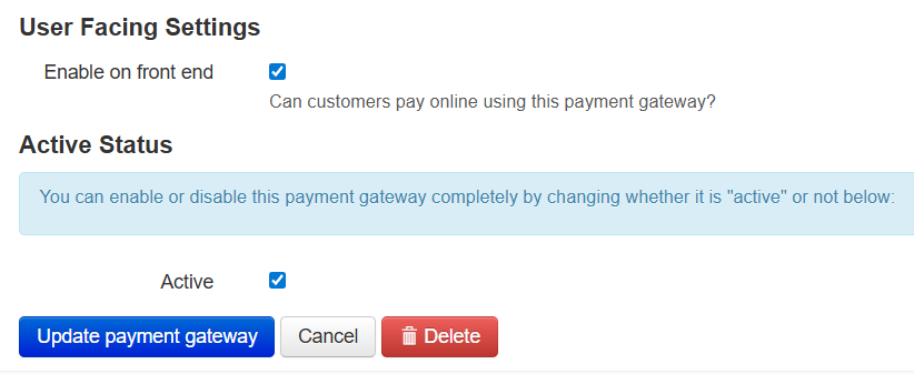 Click Update payment gateway to save your settings.